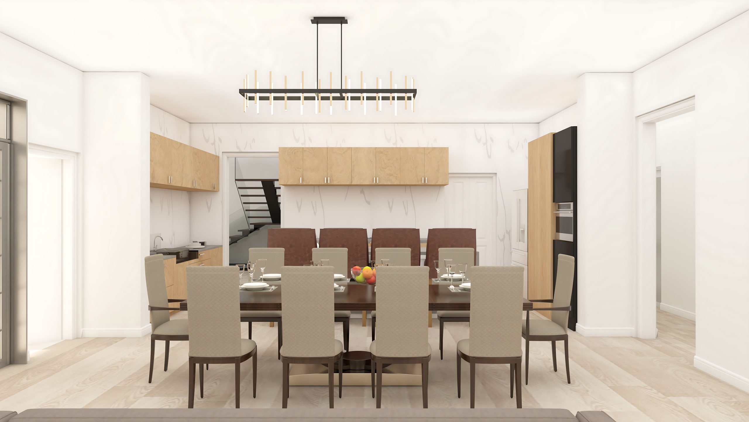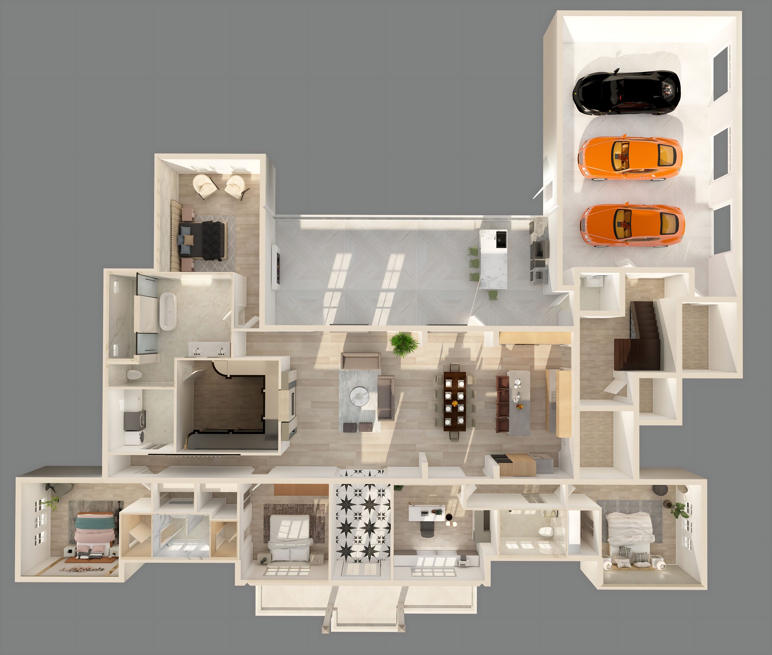 This modern-minimalist farmhouse design combines timeless charm with sleek contemporary details. The open-concept living and dining area forms the heart of the home, highlighted by natural wood flooring, clean lines, and abundant natural light. The kitchen features a large island and minimalist cabinetry that blend function with refined simplicity. Four spacious bedrooms, including a luxurious master suite, provide comfort and privacy, while multiple bathrooms offer modern finishes and efficient layouts. A cozy sitting nook and a bright sunroom add inviting character. The attached three-car garage complements the home’s thoughtful design, ensuring practicality and elegance throughout.