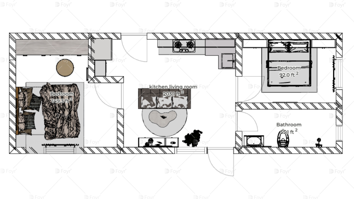 Single-Floor 2 Bedroom Layout