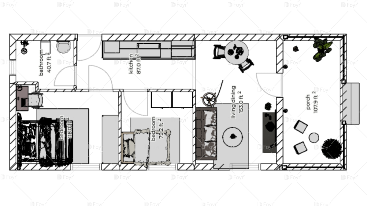 Compact 2-Bedroom Tiny Home Edit this Floor Plan