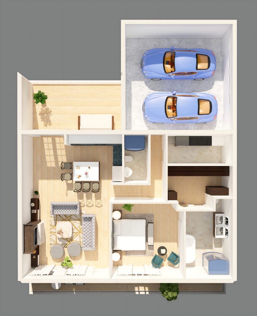 725 sq. ft. | 1 Bedroom | 1 Bathroom | 1 Half Bath | 1 Level