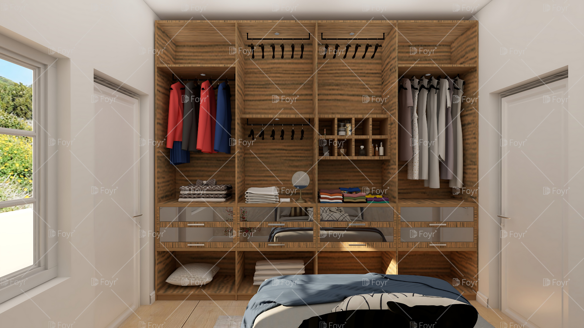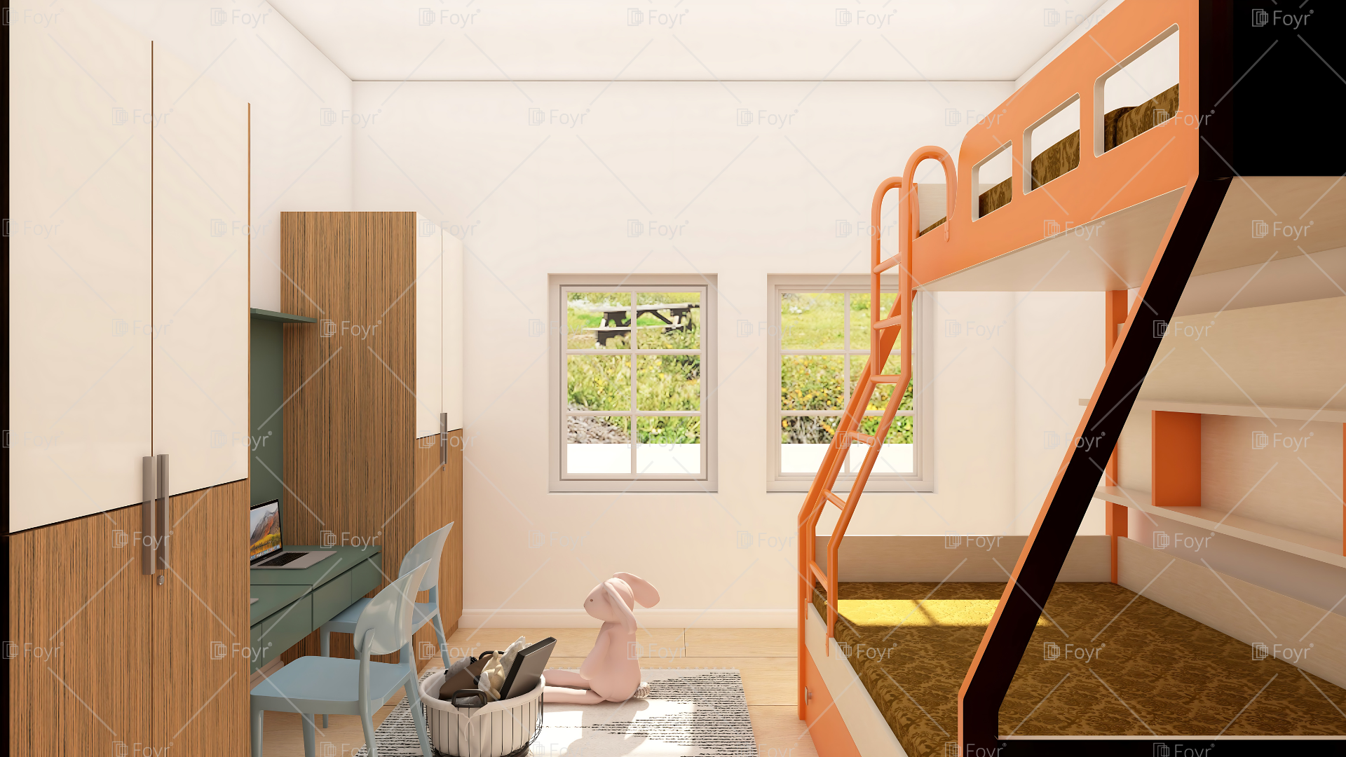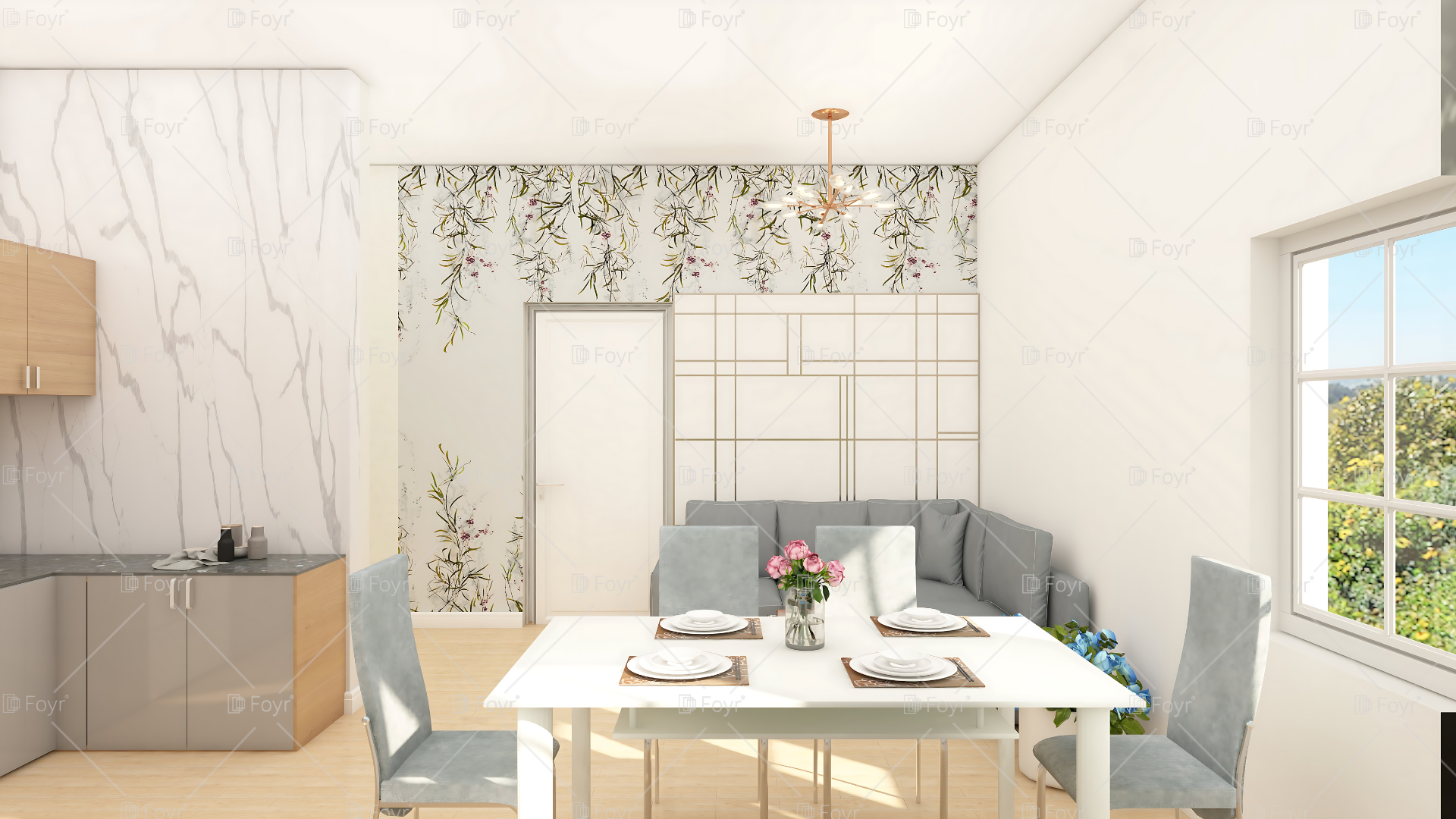 This two-bedroom modern-minimalist apartment embodies clean lines, natural tones, and efficient use of space. The open living area features a cozy sofa, soft area rug, and minimalist décor, leading seamlessly into a warm dining space with a round wooden table and comfortable seating. The kitchen is sleek and functional, with matte black cabinetry, integrated appliances, and light wood accents for contrast. Each bedroom offers a serene, clutter-free ambiance with neutral palettes, soft textiles, and strategic lighting. The bathroom highlights a refined minimalist design with concrete-textured flooring and a glass-enclosed shower. Natural light fills the home through large windows, enhancing the apartment’s calm, airy aesthetic.