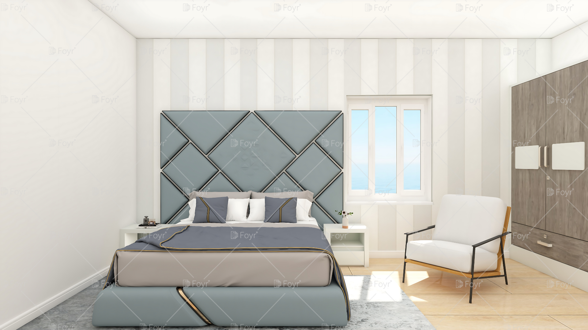 This expansive five-bedroom modern-minimalist home combines elegant design with smart functionality. The open living and dining area serves as the social hub, featuring soft neutral tones, cozy seating, and a sleek dining setup. The kitchen blends dark and light finishes for a refined aesthetic, optimized for convenience and flow. Each bedroom is designed for comfort and serenity, with large windows inviting ample natural light. The master suite includes a stylish private retreat with lounge chairs and direct access to a spacious bathroom. The home also boasts a three-car garage and a small inner courtyard with greenery, enhancing the home’s balance of practicality and relaxation.