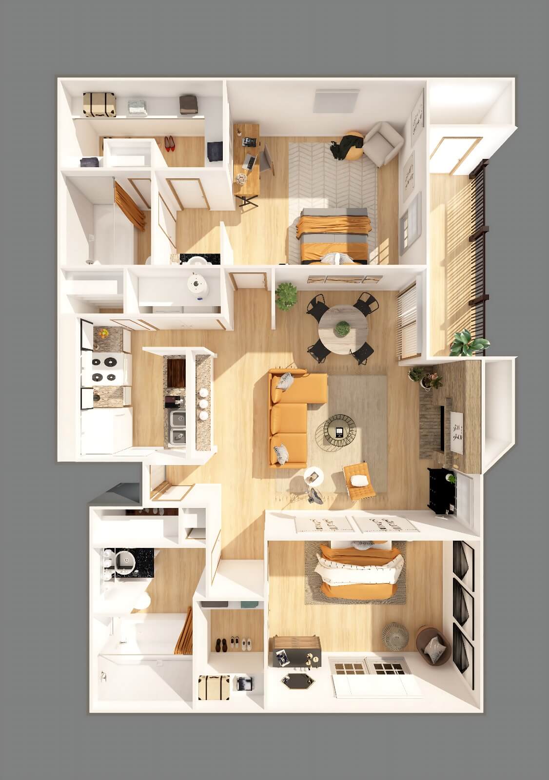 Visualize layouts with detailed 2D and 3D floor plans designed for clarity and functionality.