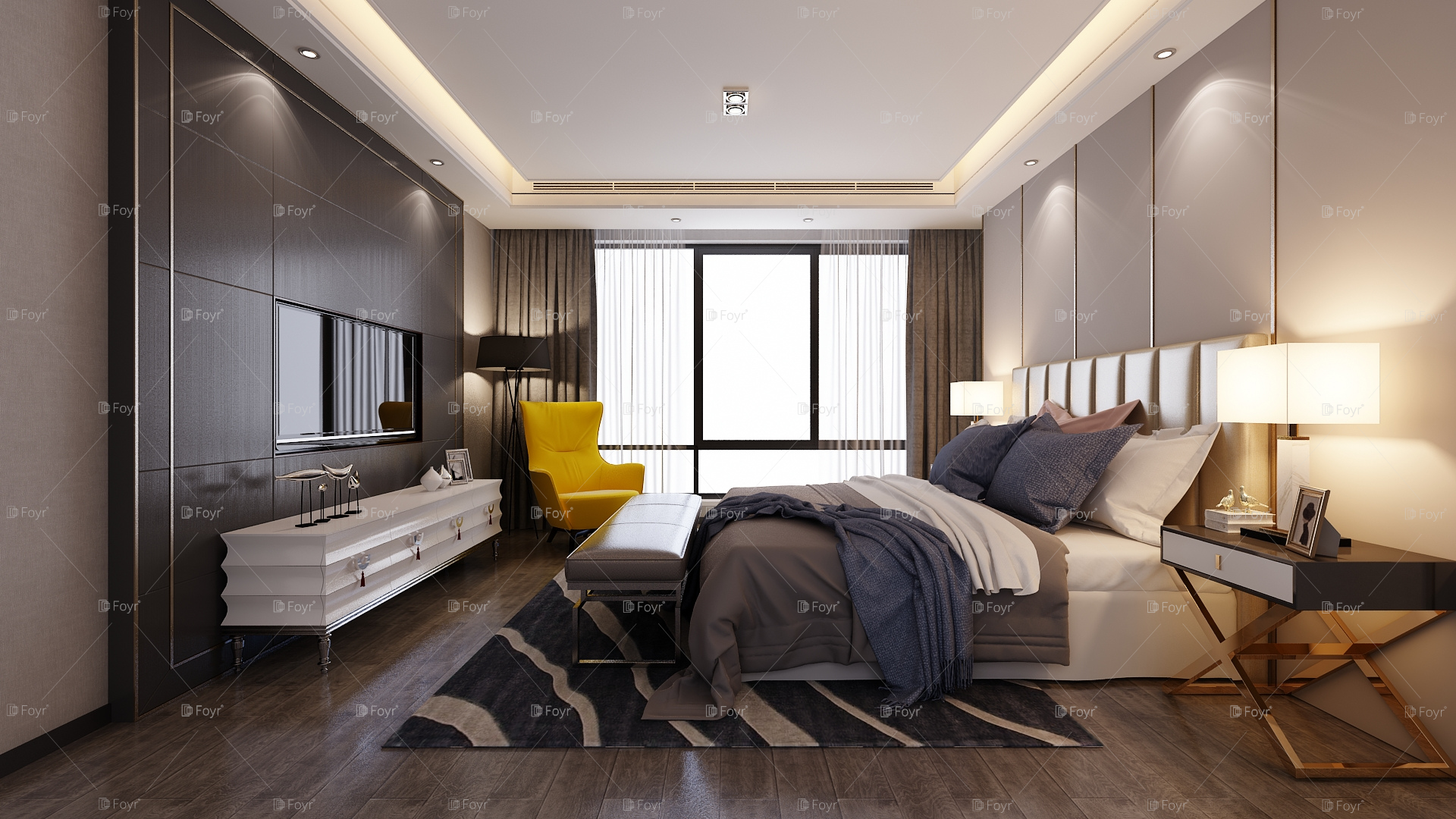 Luxe Contemporary Bedroom with Bold Accent Seating