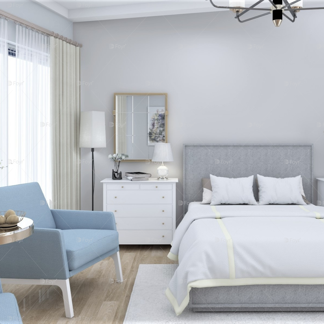 Serene Bedroom with Soft Neutrals and Powder Blue Accents