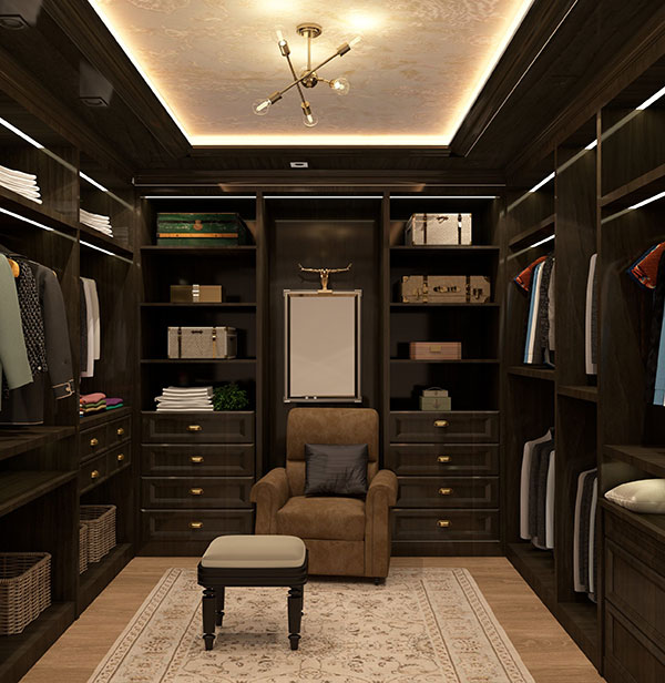 Classic Dressing Room with Vintage Armchair and Elegant Storage
