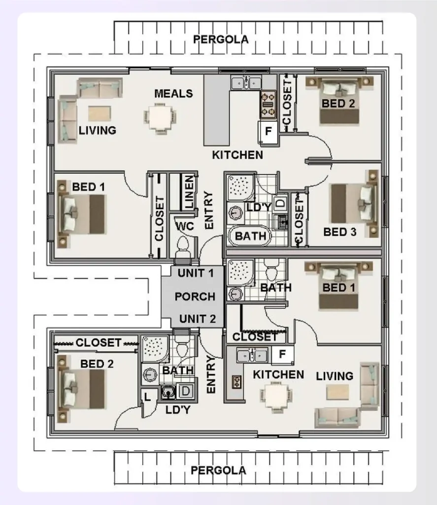 - Flow and Function: Imagine the daily routine of the residents. Ensure the entryways do not create bottlenecks and that the flow from the kitchen to the living area feels logical. You want practical layouts where each unit has its own entrance and feels like a standalone home.