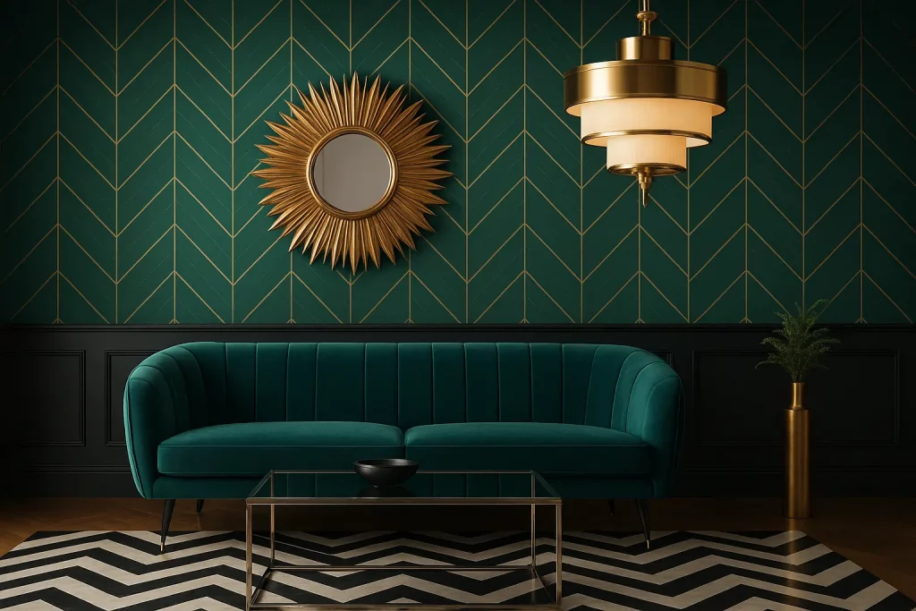 - Use Art Deco patterns in unexpected places like ceiling treatments or floor tiles